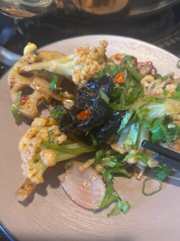 • Cauliflower & Lotus Root: Both vegetables held up well to the heat—cauliflower with a light char and the lotus root offering a satisfying crisp bite.